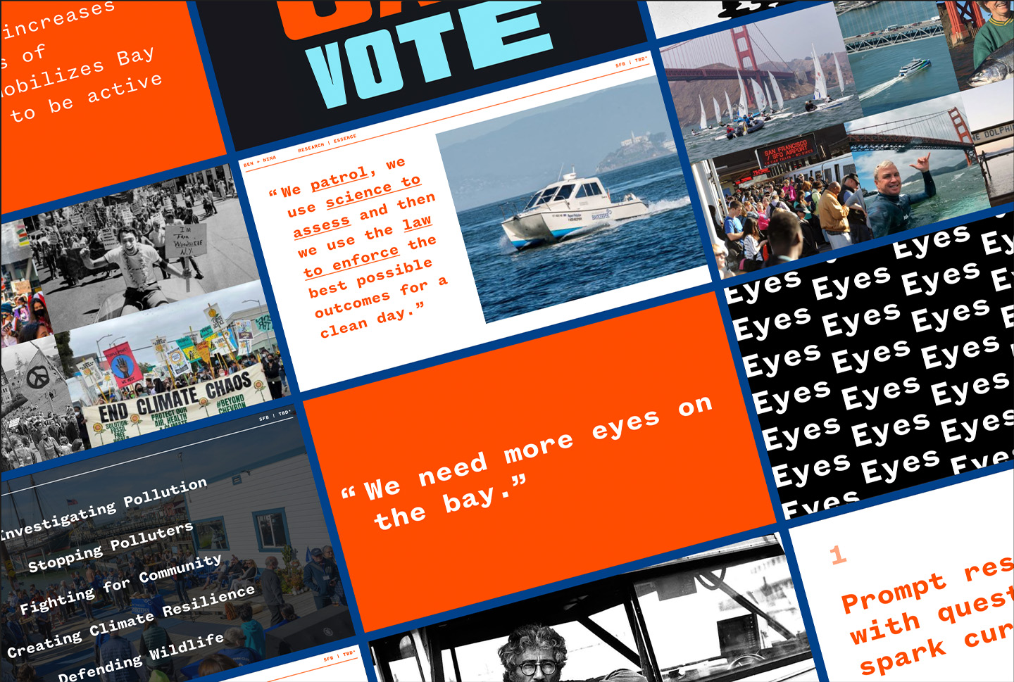 We developed an awareness campaign for Baykeeper aimed at bridging the gap between shared environmental values and direct action. The campaign’s goal was to increase awareness of Baykeeper’s work while mobilizing residents to become active supporters and reinforcing a sense of collective responsibility for the Bay. We grounded the campaign in the Bay Area’s long history of environmental and social activism, creating a visual system that feels serious, accessible, and action-driven.